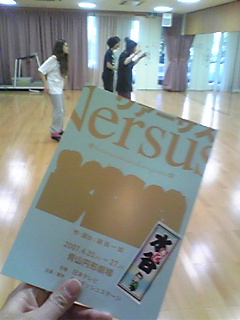 稽古場で踊るダンスチームの手前にあるのは